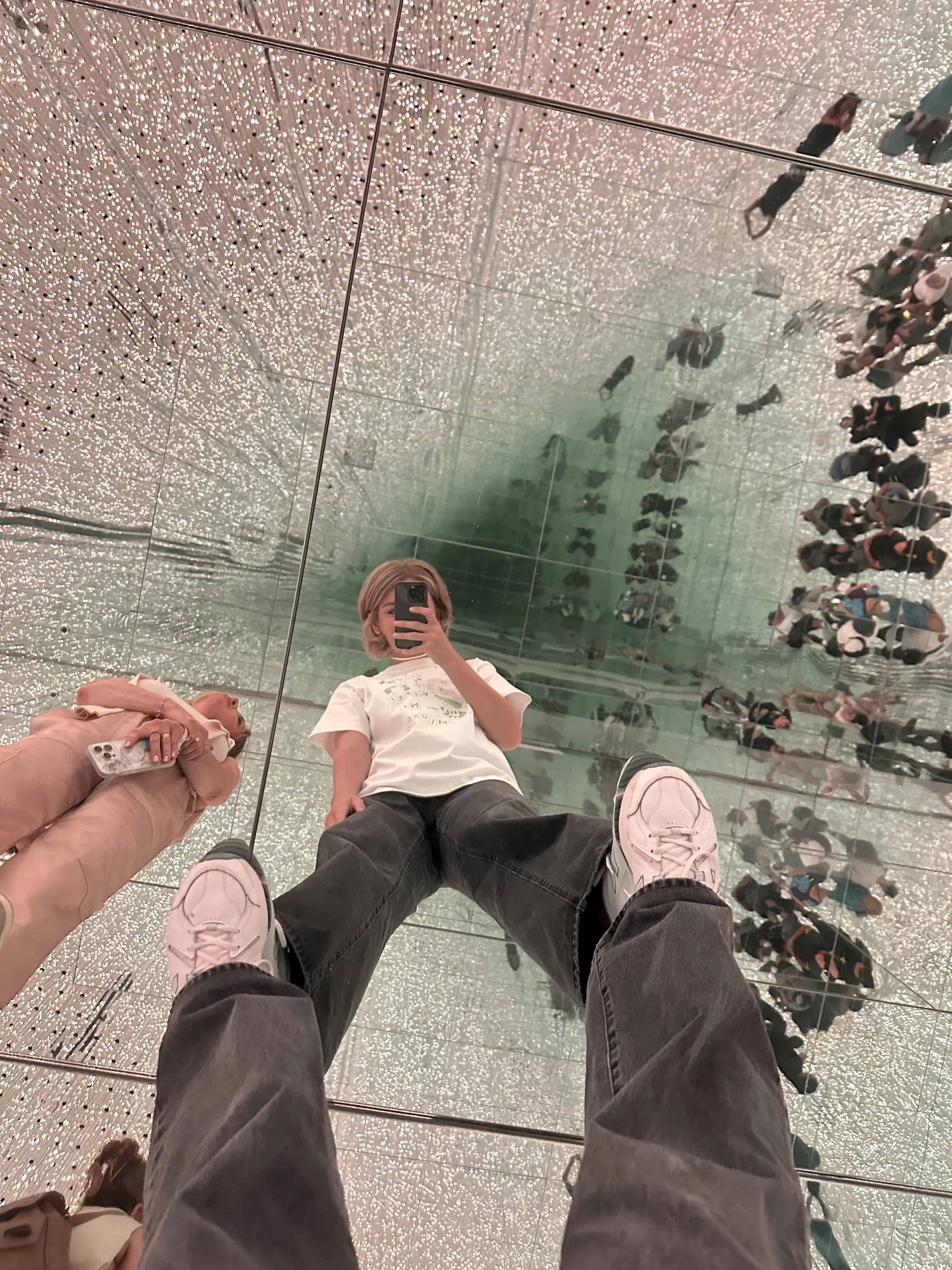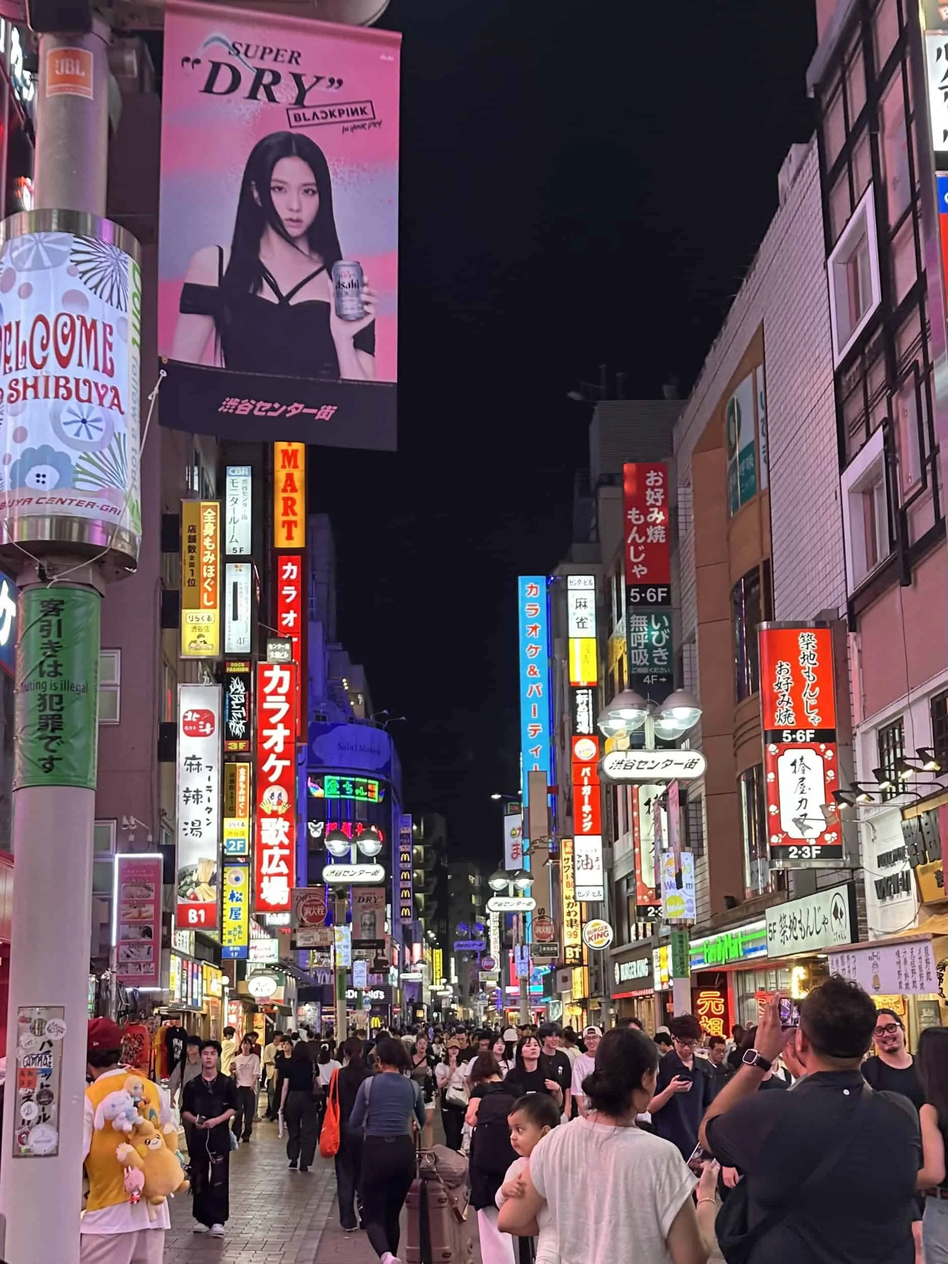 Tokyo, Japan. Mar 11 Written By Hanna Clark The Shibuya skyline viewed from a pedestrian bridge Tori gate entrance to Meiji’s shrine Sake barrels for Emperor Meiji’s spirit A teahouse and garden built by Meiji Shibuya at night Stamp art from Tokyo Metropolitan Museum of Art Selfie from teamlabs Borderless Hanna Clark